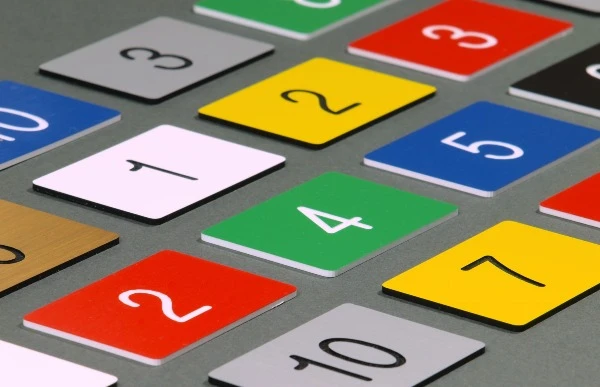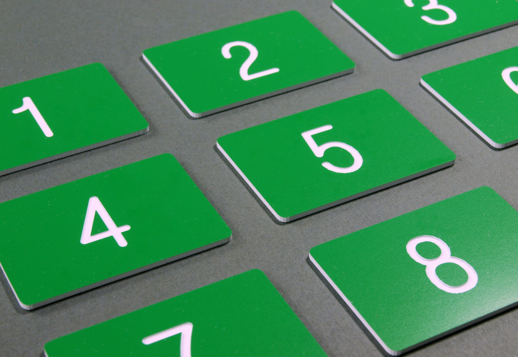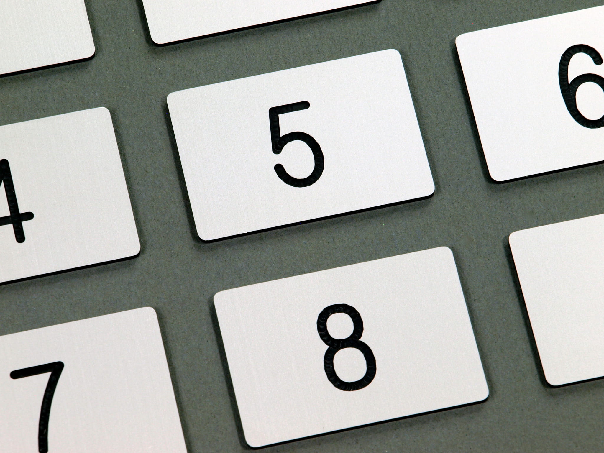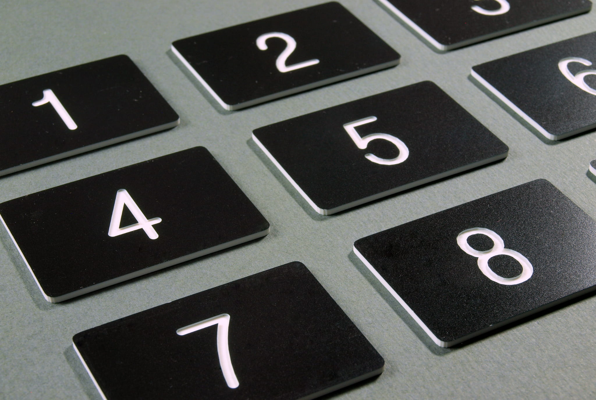 Tabliczka z numerem grawerowanym z laminatu grawerskiego. Odporne na działanie czynników atmosferycznych