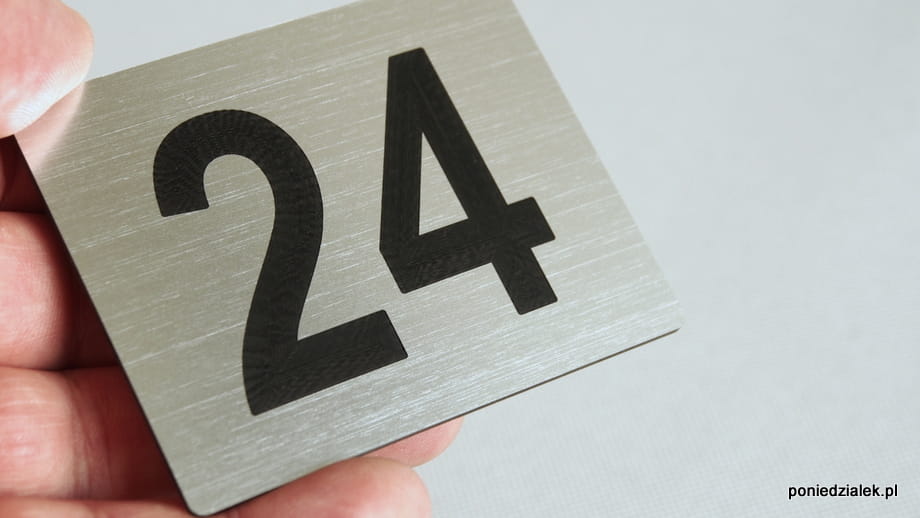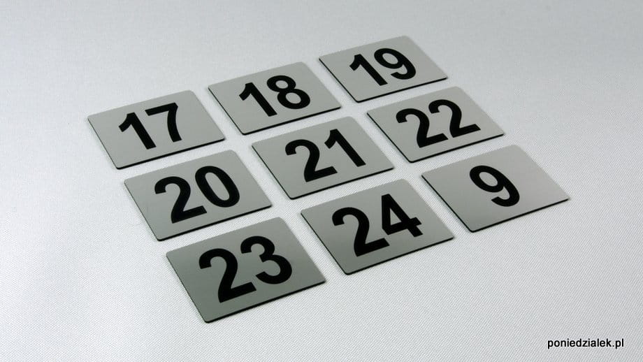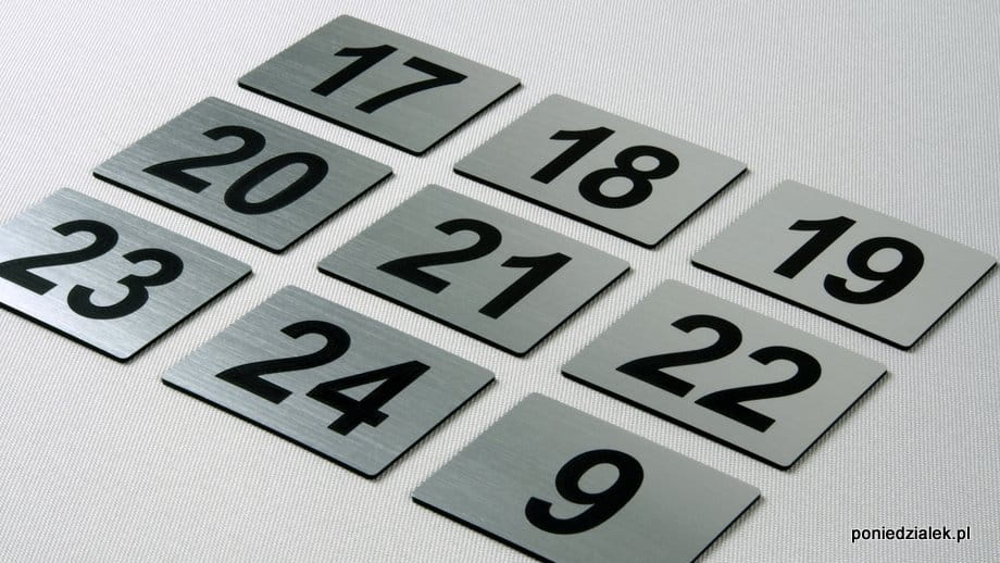 Ten wzór tabliczek przewidziany jest do umieszczenia maksymalnie 2 cyfr lub kombinacji 1 cyfry i 1 litery z zakresu od 0 do 99.