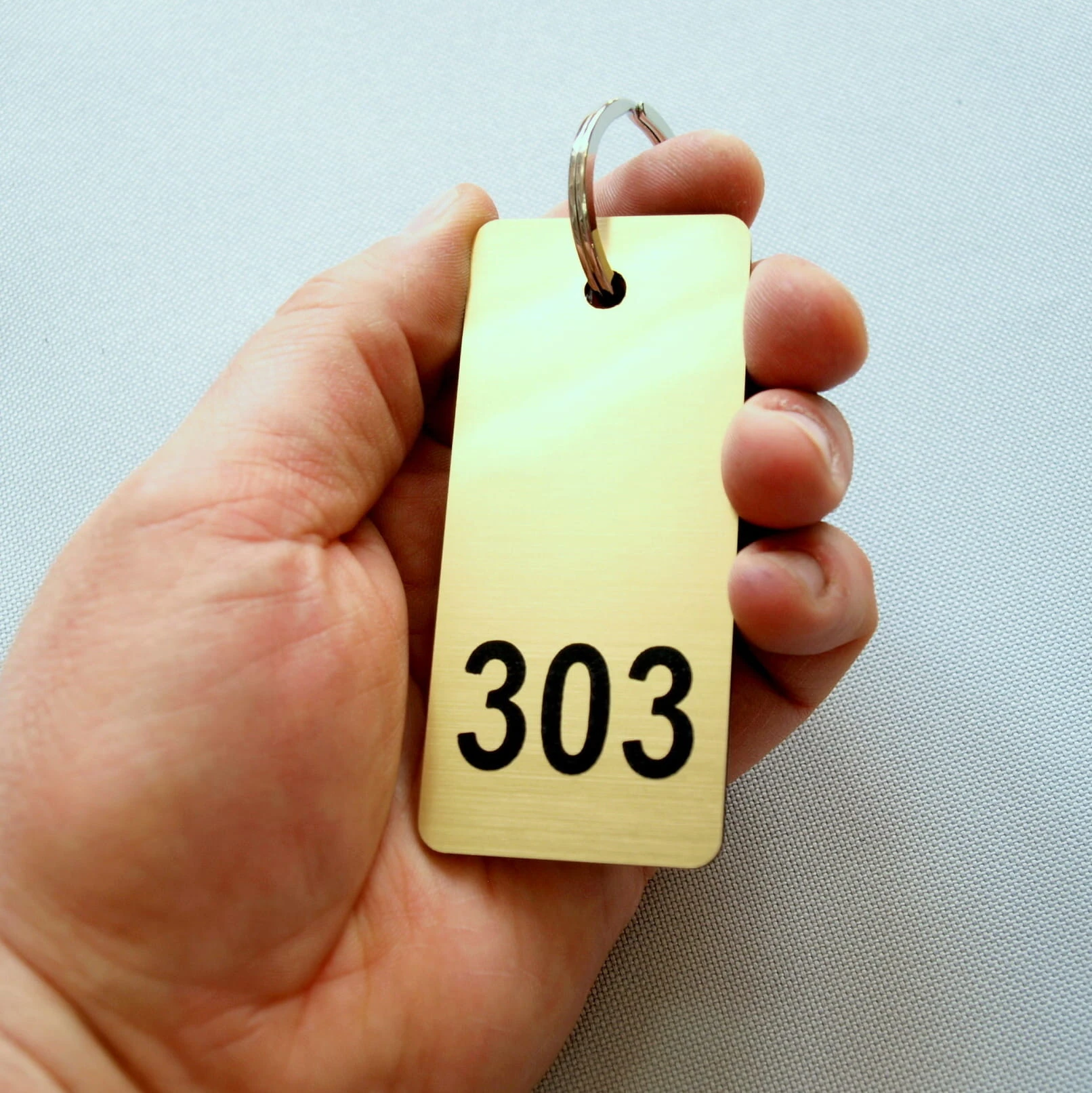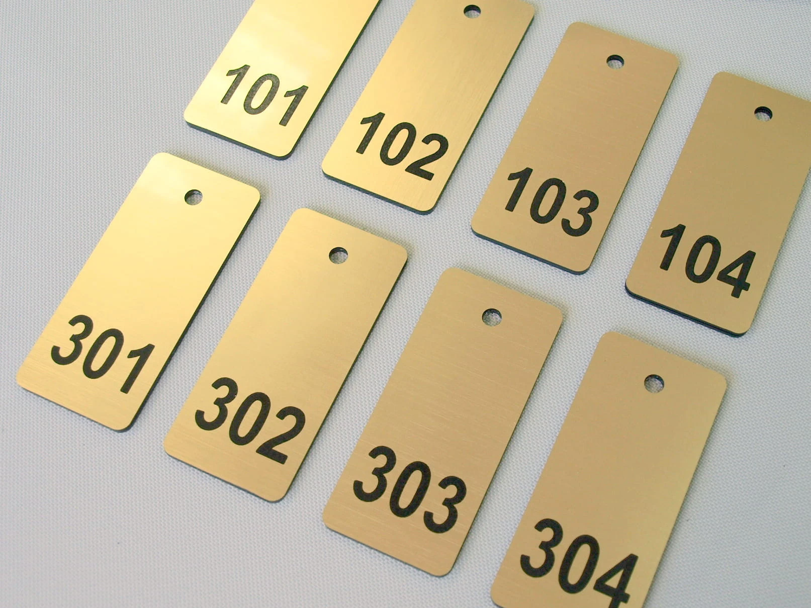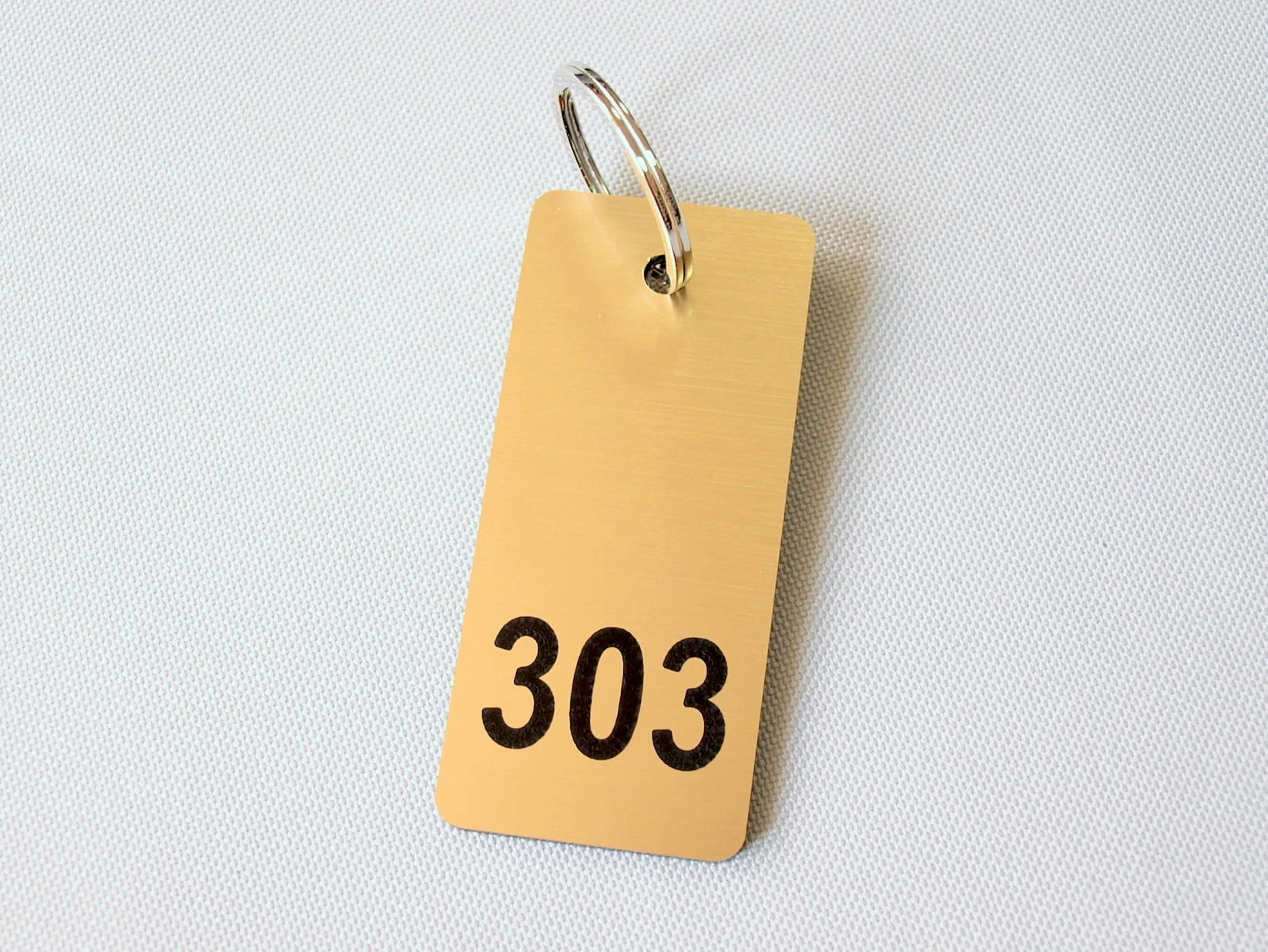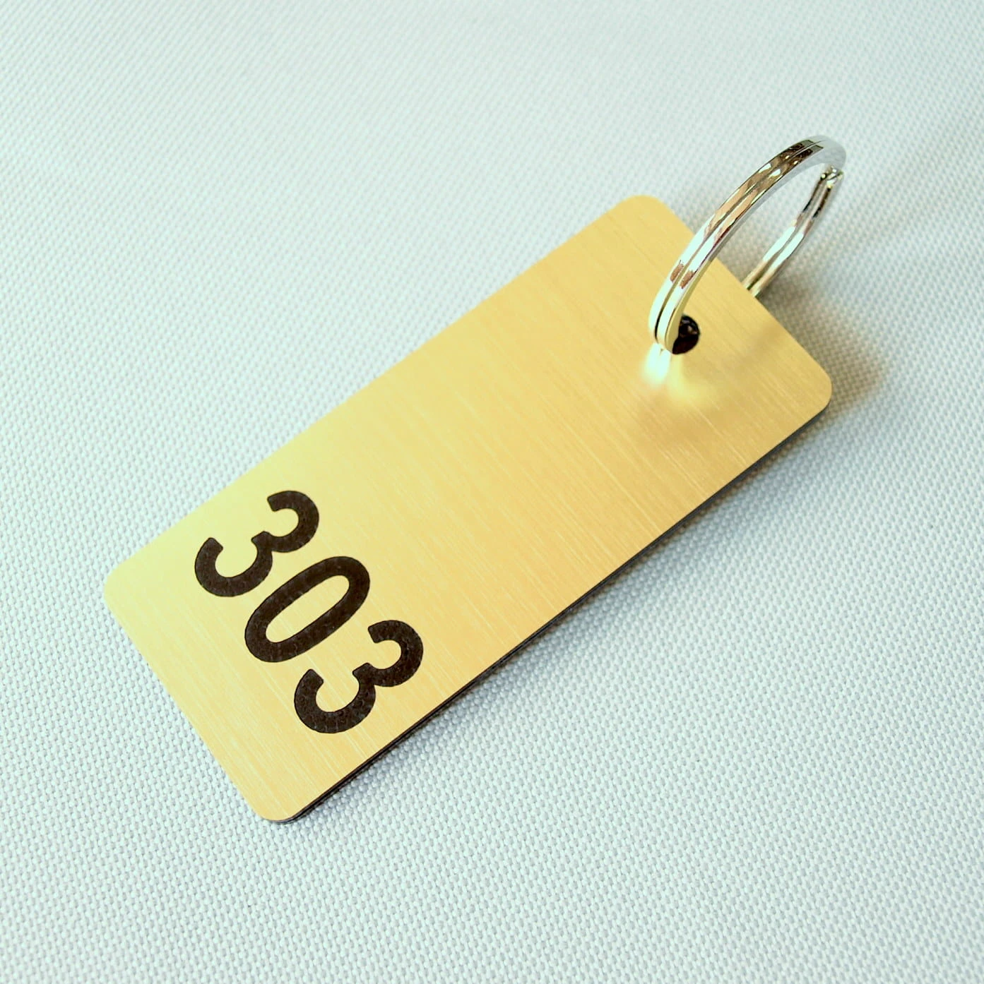 Brelok do kluczy z numerem pokoju grawerowanym w laminacie. Odporny na działanie czynników atmosferycznych.