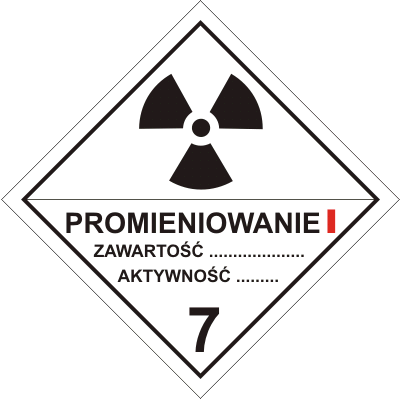 Materiały promieniotwórcze w opakowaniu kat. I - nalepka ADR