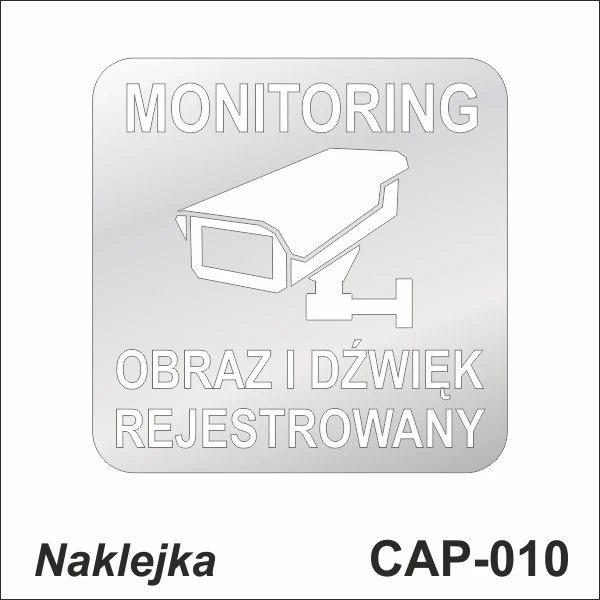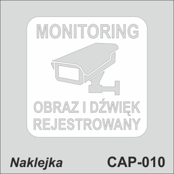 Monitoring obraz i dźwięk rejestrowany - piktogram samoprzylepny z folii szronowej / mrożonej lub białej