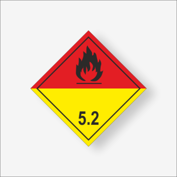 Nalepka ostrzegawcza do oznakowania opakowań zawierających nadtlenki organiczne. KLASA 5.2 (zagrożenie)