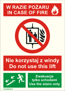 Znak - W razie pożaru nie korzystaj z windy.