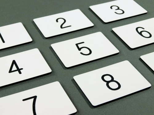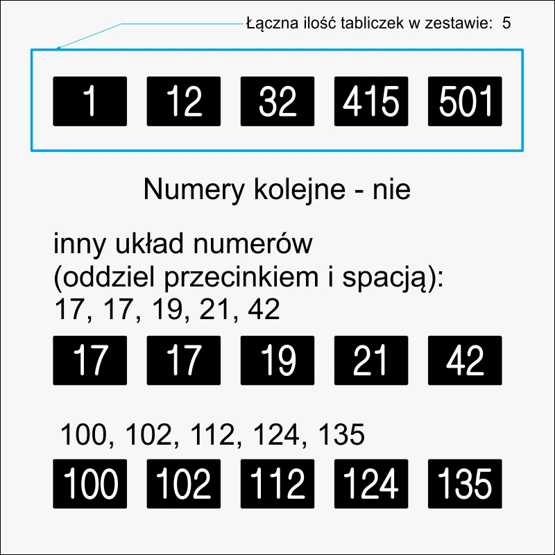 Ten wzór tabliczek przewidziany jest do umieszczenia maksymalnie 2 cyfr z zakresu od 0 do 99.