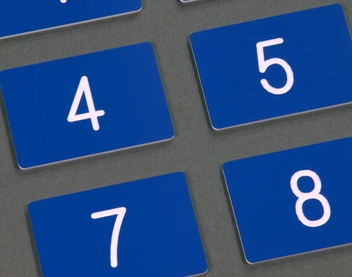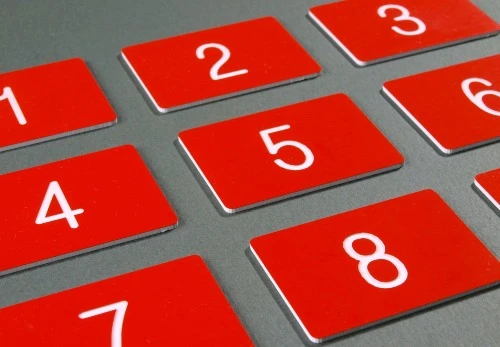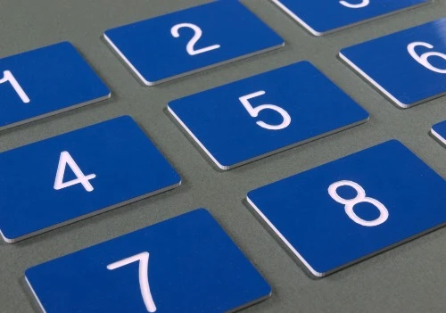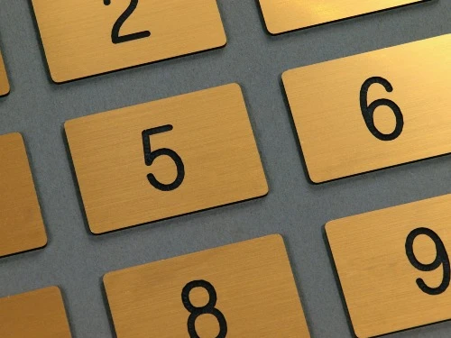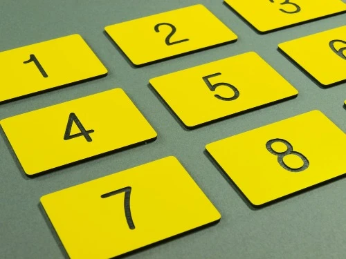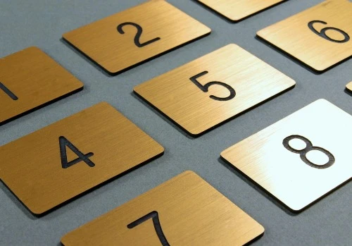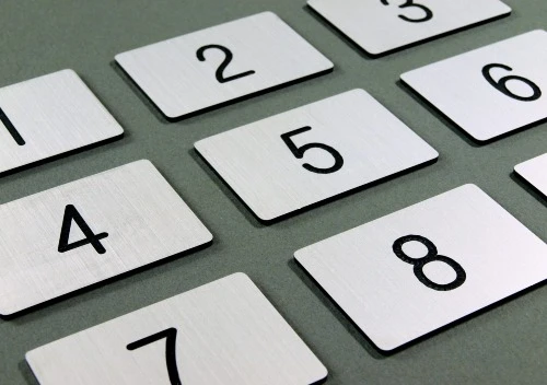 Tabliczka z numerem grawerowanym z laminatu grawerskiego. Odporne na działanie czynników atmosferycznych
