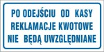 Po odejściu od kasy reklamacje kwotowe nie będą uwzgledniane - Tabliczka informacyjna