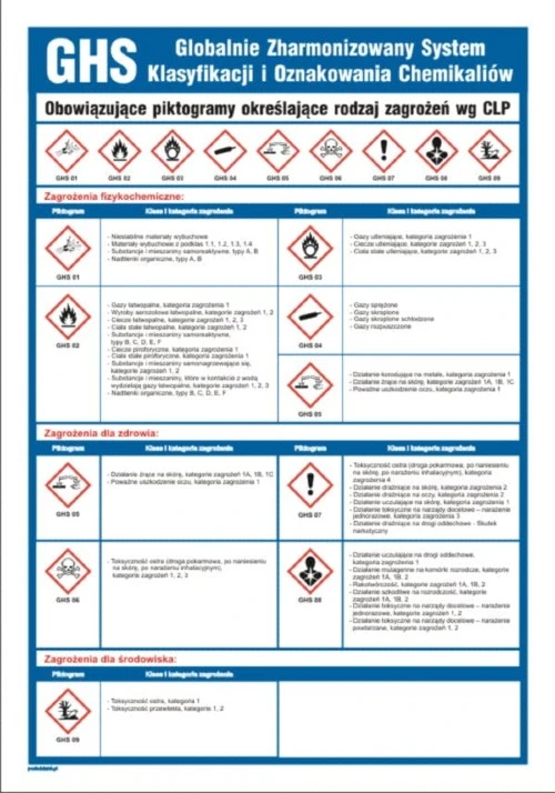 Poglądowa tablica - piktogramy GHS znaki wg CLP