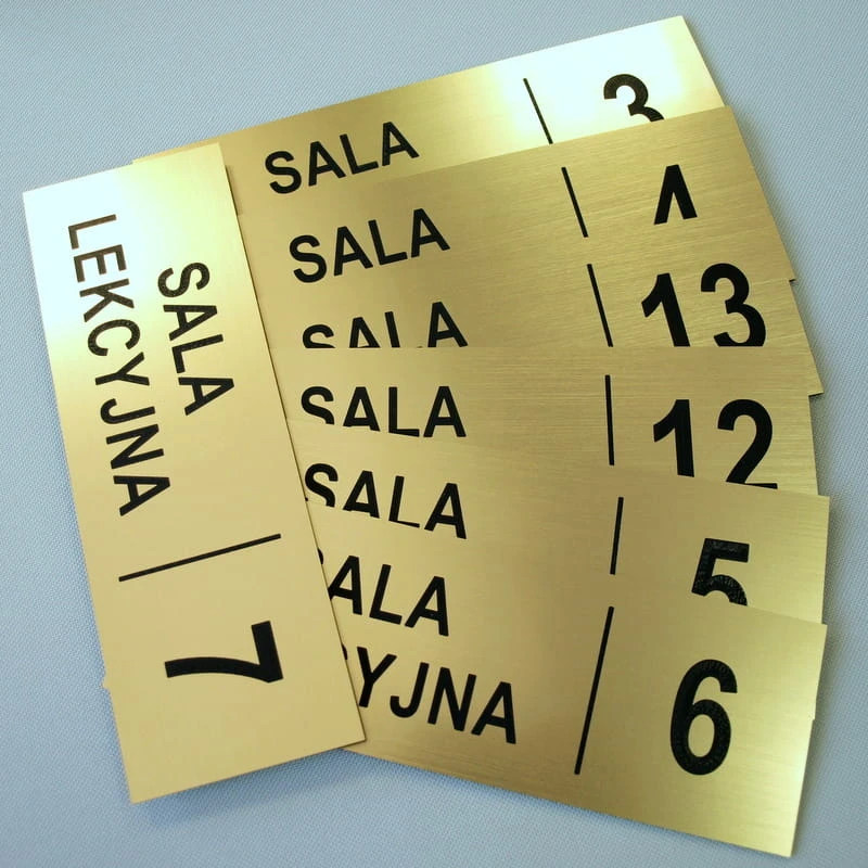 Tabliczka informacyjna na drzwi grawerowana mechanicznie.