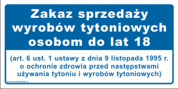 Zakaz sprzedaży wyrobów tytoniowych osobom do lat 18 - Tabliczka informacyjna