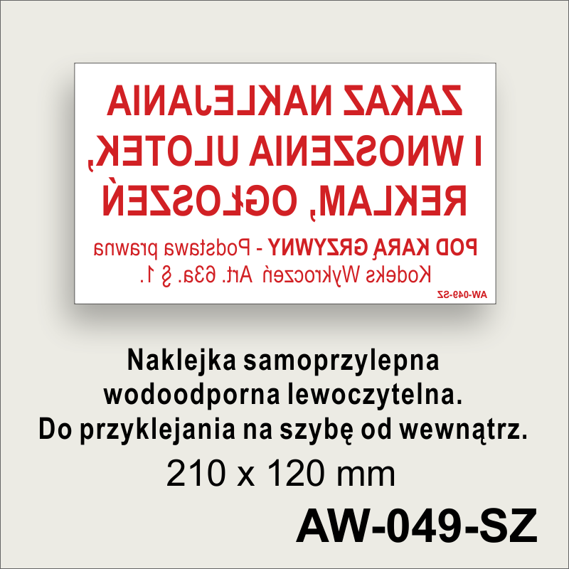 Naklejka samoprzylepna wodoodporna. wymiar 210 x 120 mm
