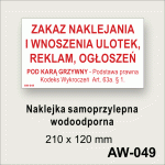 Zakaz wnoszenie i naklejania ulotek, reklam, ogłoszeń - naklejka